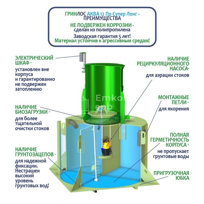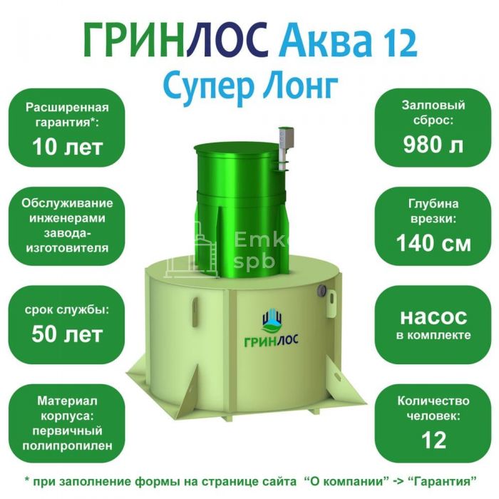 Септик ГРИНЛОС Аква 12 Супер Лонг