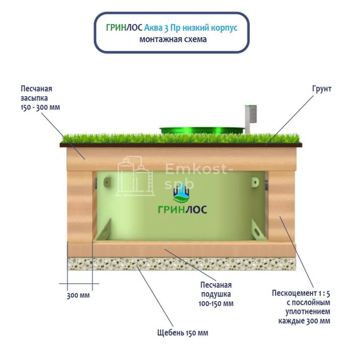 Септик ГРИНЛОС Аква 3 низкий корпус Пр