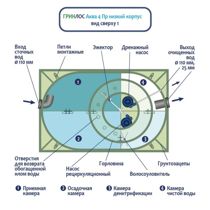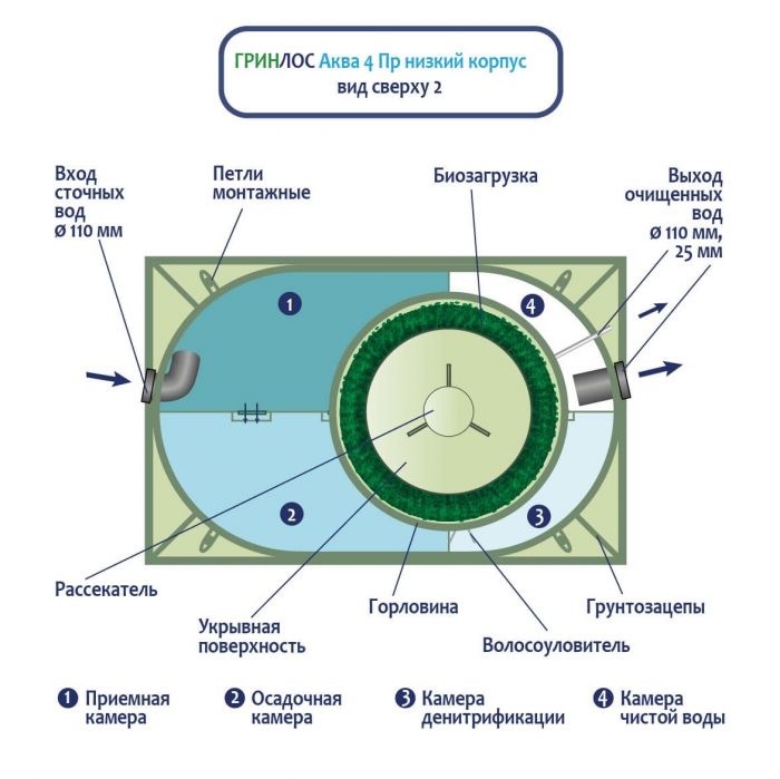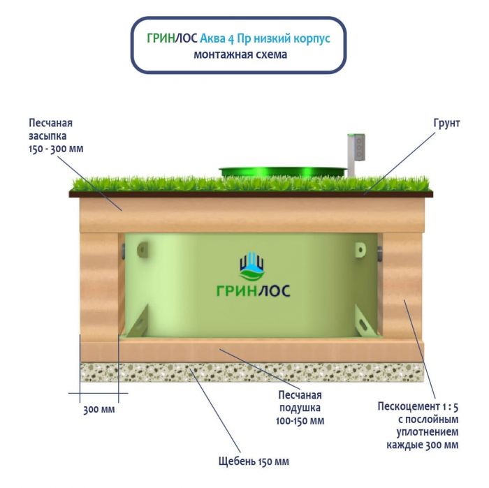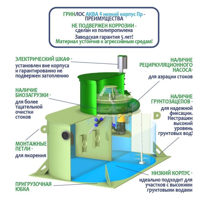 Септик ГРИНЛОС Аква 4 низкий корпус Пр