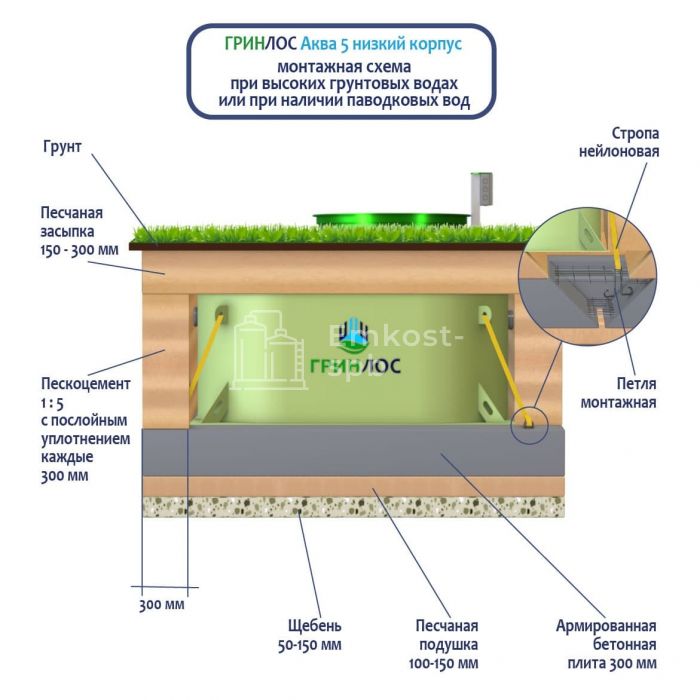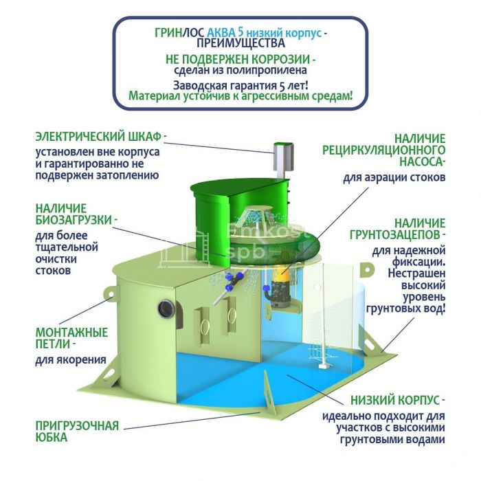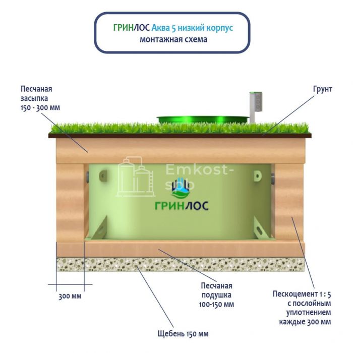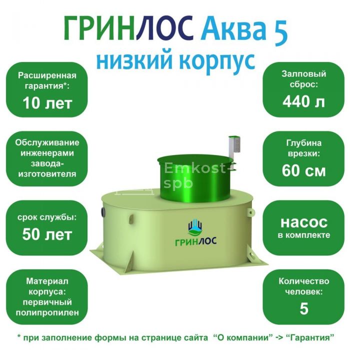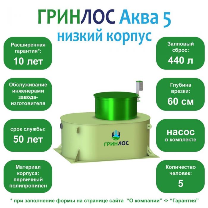 Септик ГРИНЛОС Аква 5 низкий корпус