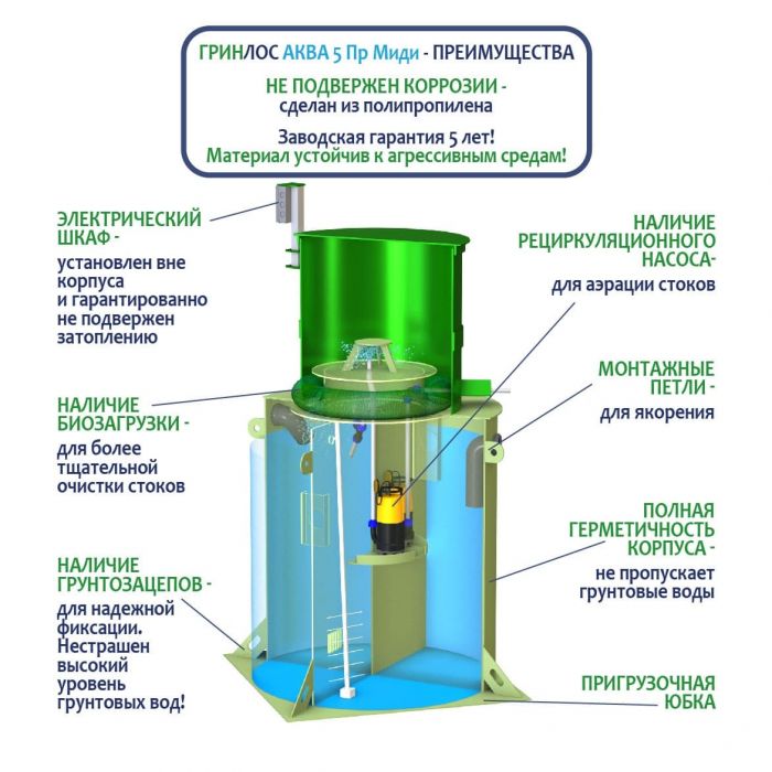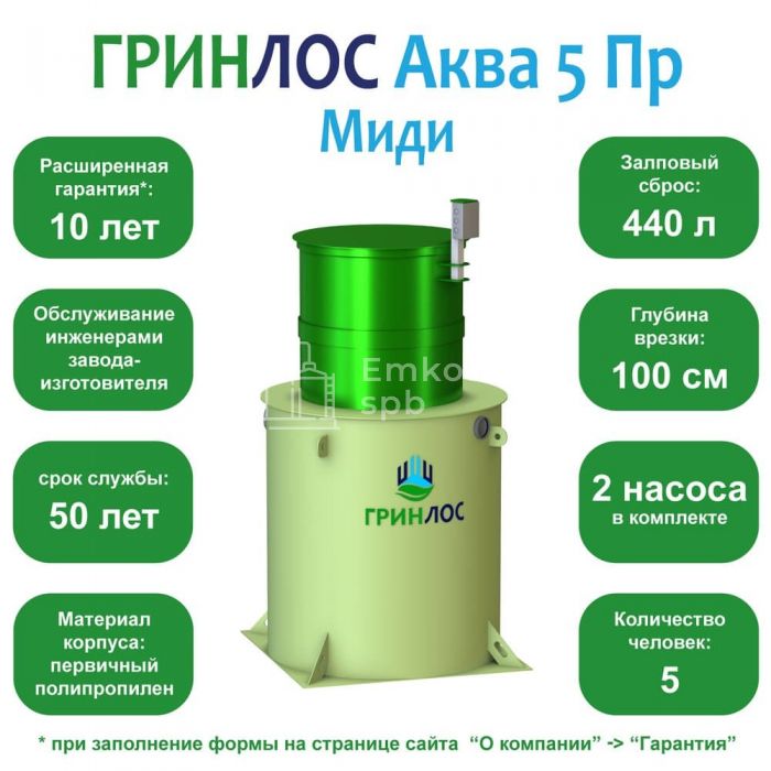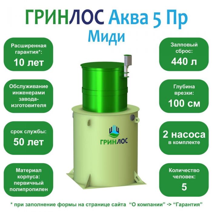 Септик ГРИНЛОС Аква 5 Пр Миди