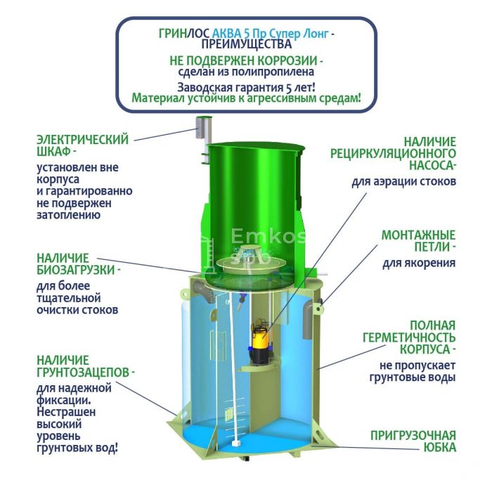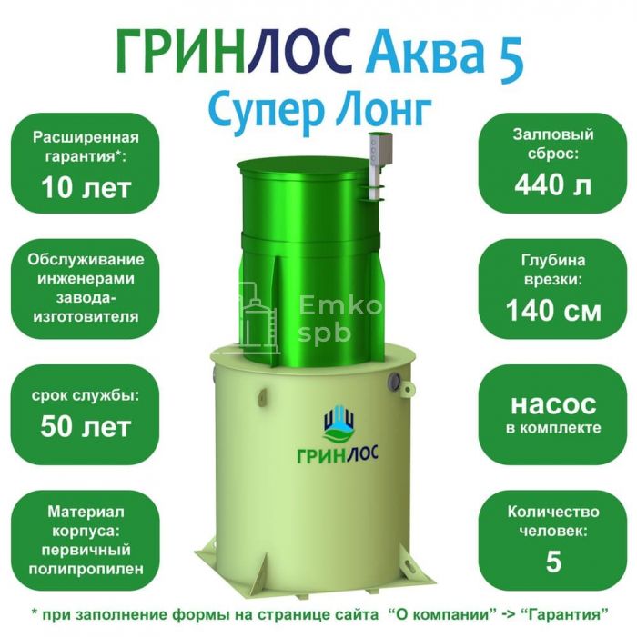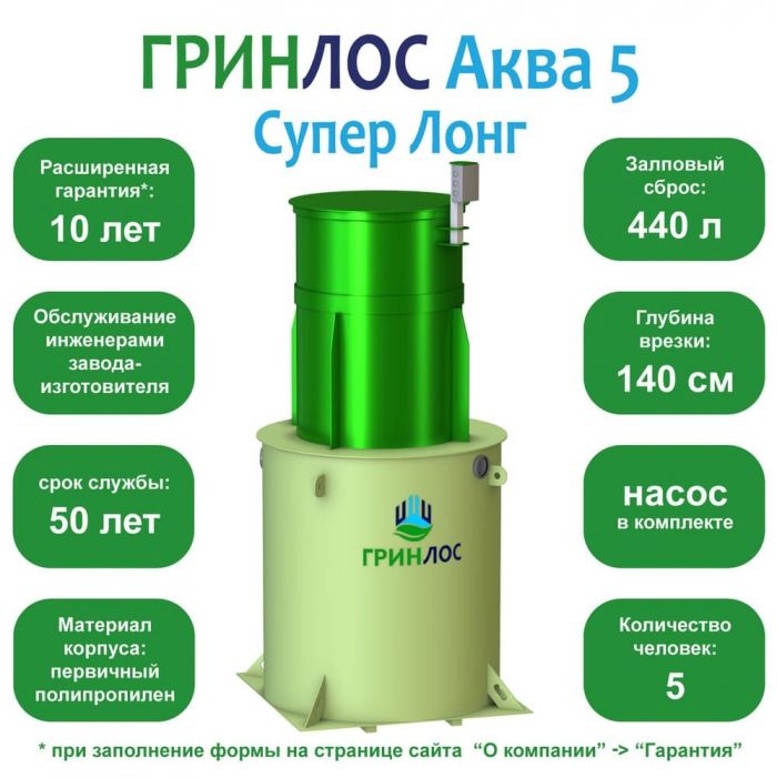 Септик ГРИНЛОС Аква 5 Супер Лонг