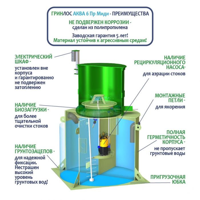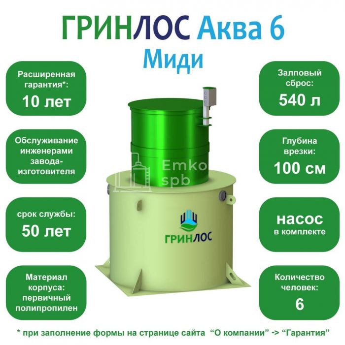 Септик ГРИНЛОС Аква 6 Миди