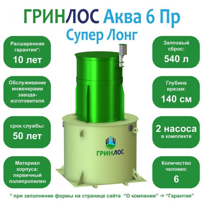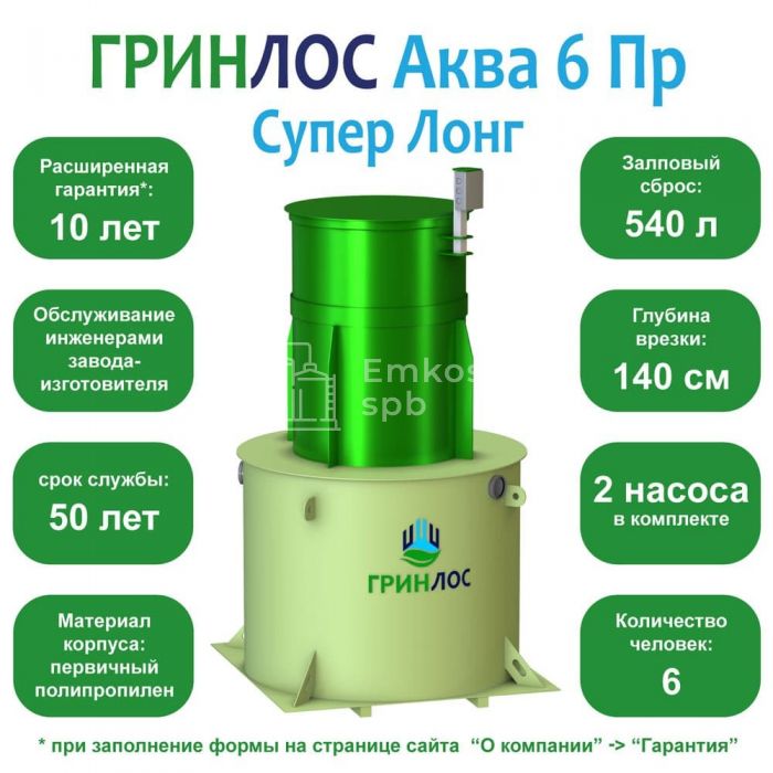 Септик ГРИНЛОС Аква 6 Пр Супер Лонг