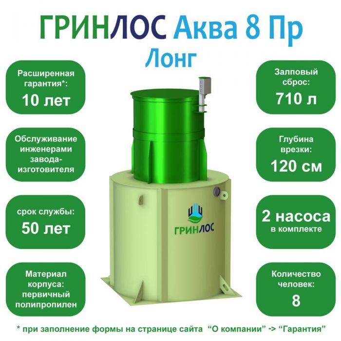 Септик ГРИНЛОС Аква 8 Пр Лонг