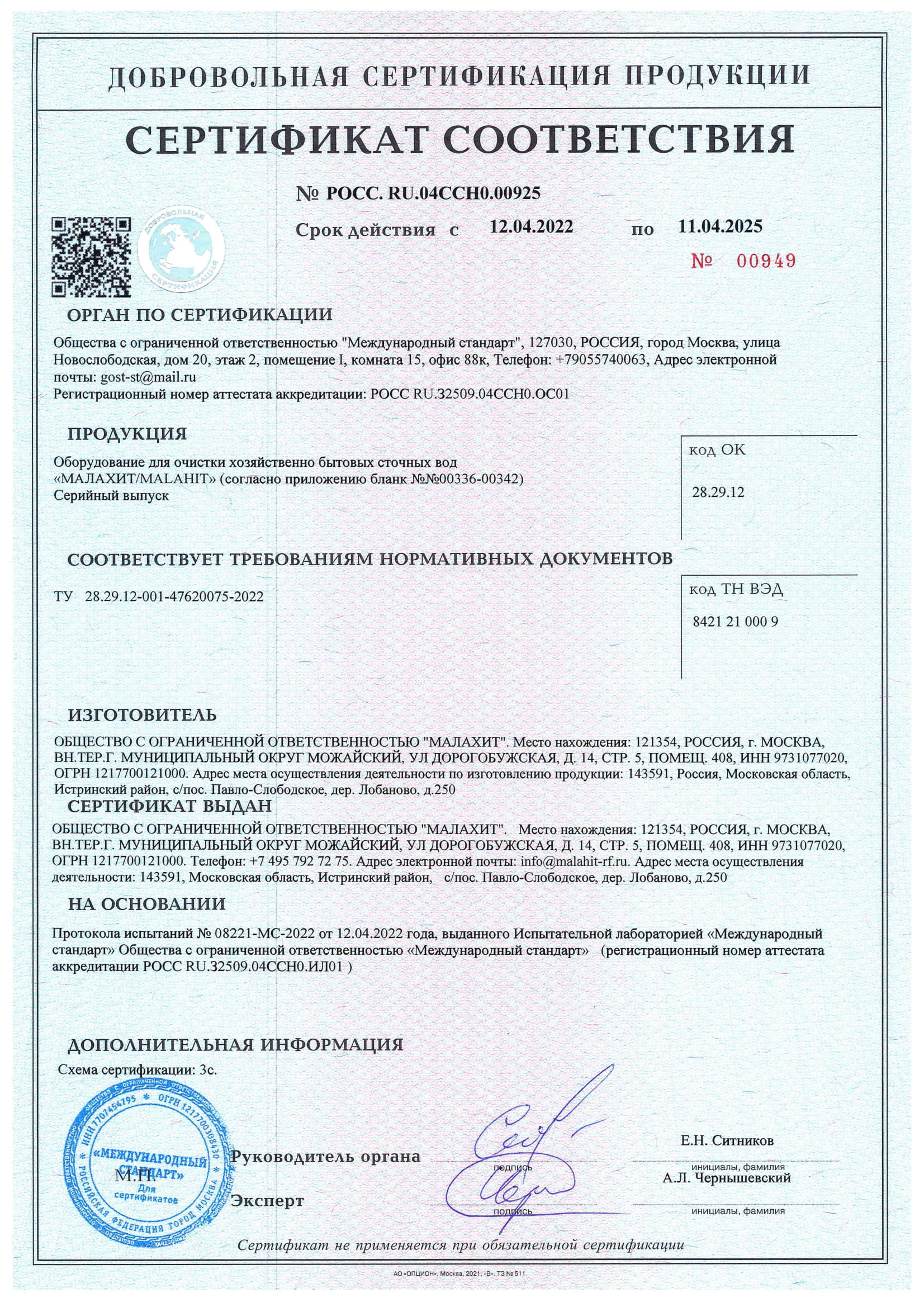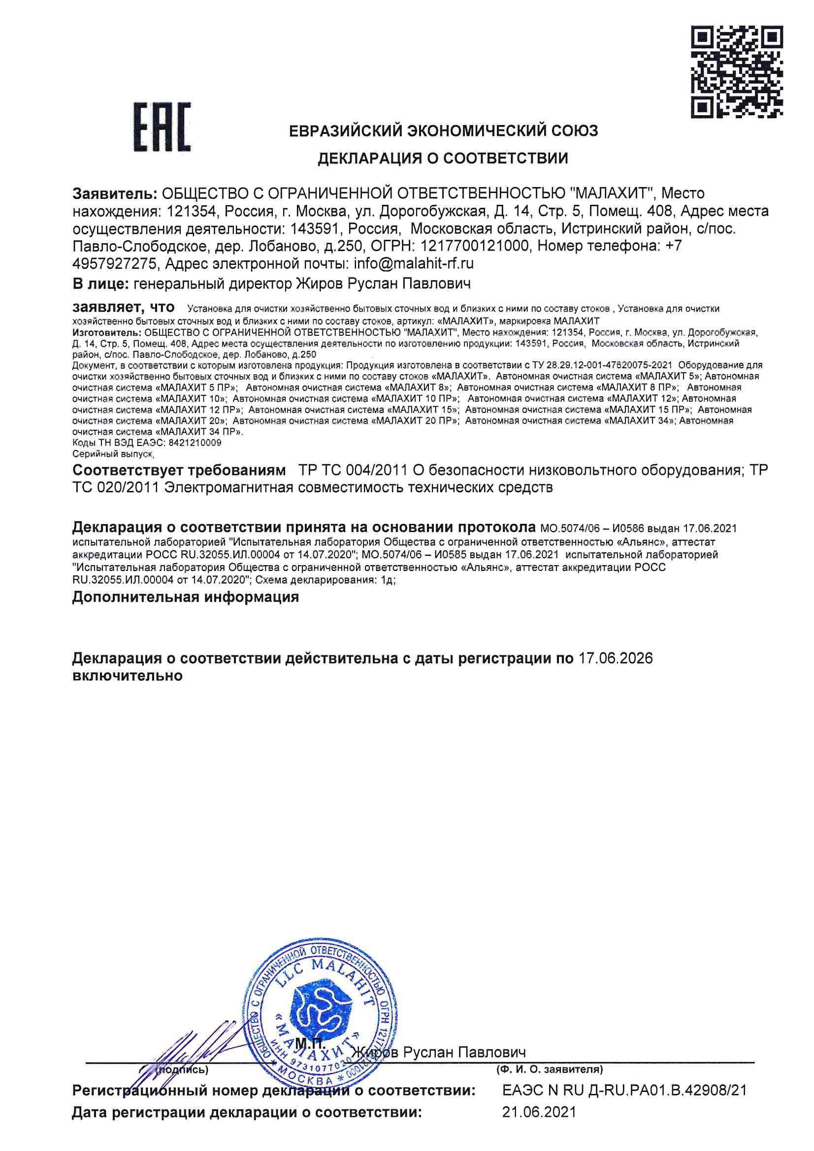 — Гарантийный срок на корпуса оборудования Малахит – до 5 лет;